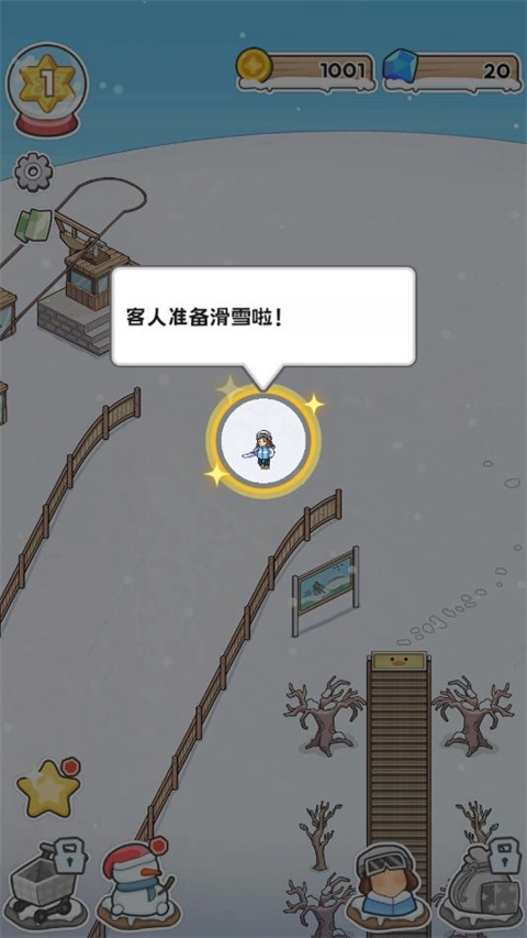 1、在本站下载安装开个滑雪场安卓版游戏,安装完成后打开进入游戏。当客人处于滑雪场场景时,需前往服务大厅购买门票。