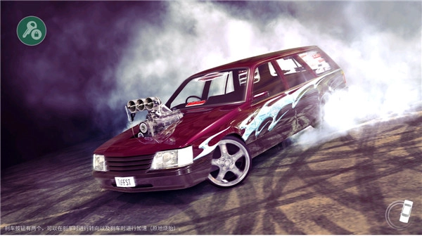 3、方向盘在左边,刹车和漂移在右边,依照提示就能做出超炫酷的漂移动作。