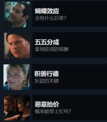 18、选择的重要性(找到全部章节):达成任意结局后即可解锁该成就。这款游戏总共包含14个章节。每当找到一个章节,Steam会展示进度。其中有个章节较易被忽略,即前往警局自首,建议在获取守护者成就时一同找到此章节,如此最为省时。