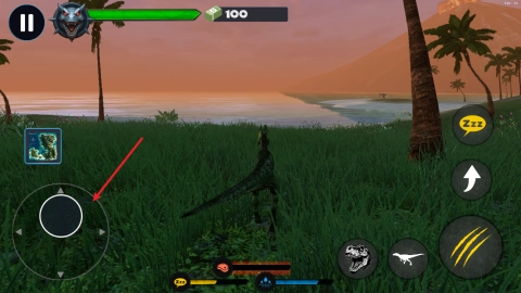 2、踏入游戏后,左侧摇杆能让您轻松操控恐龙移动,在自由的侏罗纪世界中快速穿梭。