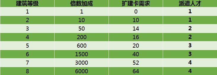 在推进主线的过程中,玩家能够获取扩建卡用以升级建筑。鉴于此玩法不涉及氪金,所以在前7天内,玩家所能得到的扩建卡数量存在一定限制。这就要求玩家需合理选择店铺进行升级。以下是各店铺升级所需的扩建卡数量以及相应加成情况: