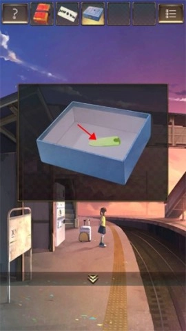 2、前往候车厅,在椅子上发现神秘的【宝箱】,同时获取盒子底部的【纸片】以及角落的【扫帚】。