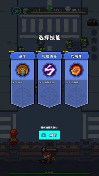 3、当击败僵尸的数量填满能量条时,可选择技能来强化攻击。