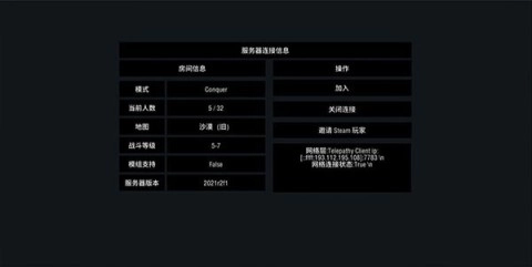 3、成功连接至服务器后,你会看到有关地图以及在线人数的信息,点击“加入”选项,就能开启你的战斗之旅。