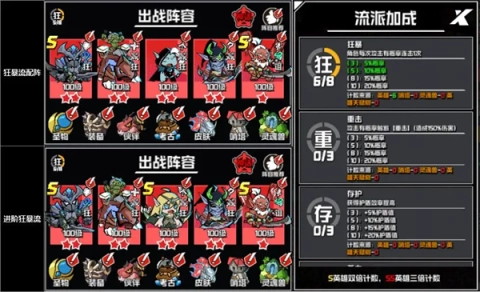 狂暴队阵容建议:亡灵骑士、犀牛骑士、亡灵游侠、复仇者、火刃剑圣。此阵容可获取二级狂暴流派加成,其中主力输出是亡灵骑士,副C则为复仇者或者精灵游侠。亡灵骑士拥有高频持续输出能力,无论是清理小怪还是迎战 BOSS 都有出色表现,能助力玩家轻松通过早期关卡。