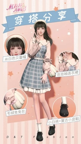 1出门赴约的甜妹风穿搭来啦,一条蓝格纹泡泡袖连衣裙,再配上毛茸茸的兔兔包,瞬间营造出满满的清纯感。