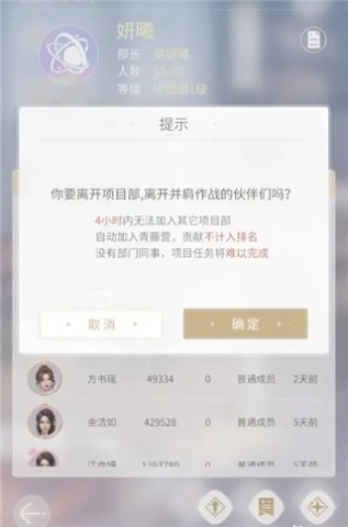 5、于指定时间内从项目部退出后,便无法加入其他部门。若确定要退出,再次确认即可。