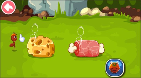 7、将蚂蚁拖拽至与食物对应的位置,观察它们是怎样开展工作的!