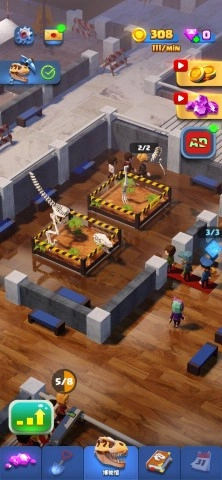 1. 这款游戏巧妙融合恐龙收藏与博物馆经营元素,把玩家带入五彩斑斓的博物馆经营场景,玩家可通过收集恐龙化石及各类展品,以此吸引参观者。