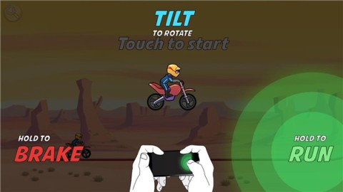 1、操作简便的控制方式,轻触屏幕即可加速,倾斜手机就能轻松把控摩托的倾斜方向。