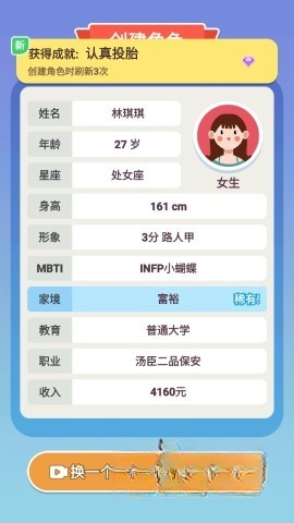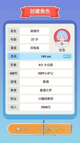 2. 随机创建一个角色,你能够选择更换,或者直接确定。