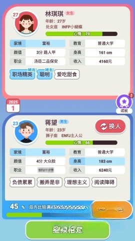 3、借助功能,能够持续更换角色,寻觅自己心仪的。