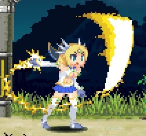 下蹲时发动的攻击名为天使光环,此攻击具备电属性,且属于多段攻击类型,在应对行动迟缓的地面敌人时,能发挥出良好效果。
