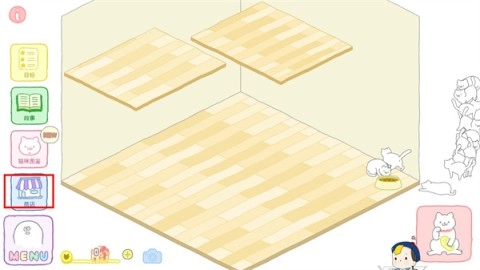 1、当进入游戏后,第一步需为猫咪准备食物,只需点击猫盆就能添加猫粮。