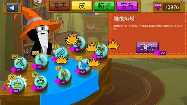 雕像炮塔:雕像会恢复一定生命值,同时发射强力激光进行自我防护,此状态持续20秒。