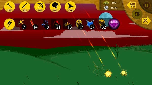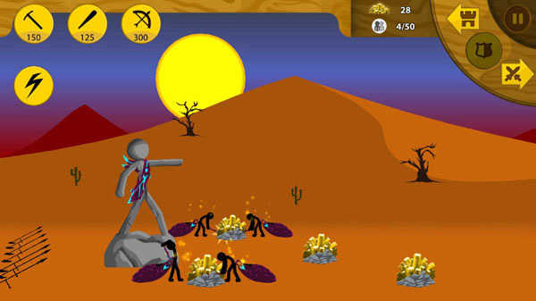 待敌人出现后,操控矛兵,同时安排矿工撤离,指挥城堡弓兵射击。你只需手持盾牌吸引敌人攻击,避免他们对雕像造成伤害即可。