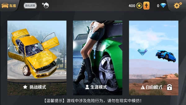5、开启车祸模拟挑战,每一关的要求各异,而且车祸场景越惨烈,得分就越高。