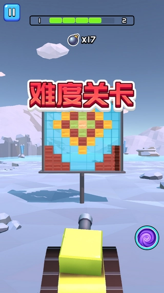 3、设有多种模式的考验,借助手中的炮塔把前方的方块统统击落。