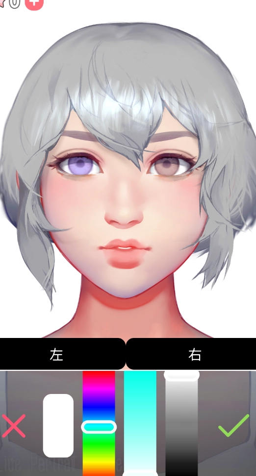 3、关于美女的头发、肤色、眼睛的颜色与大小,以及鼻子等方面,皆可自行选择调整。
