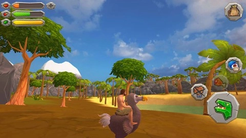 4、【骑乘】乐趣:召唤出的可骑乘恐龙,轻点马鞍图标,就能在广袤的岛屿间畅快遨游。