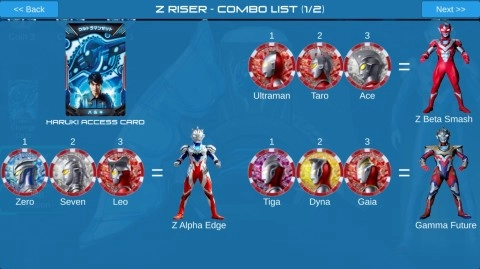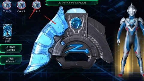 4、就拿泽塔的伽马形态来说,在1号槽位放入迪迦硬币,2号槽位放入戴拿硬币,3号槽位放入盖亚硬币,这样就能打造出属于你自己的变身组合。