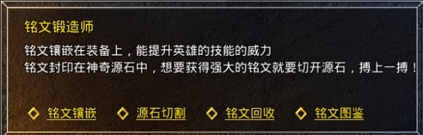 庄园内设有铭文系统专属NPC,点击该NPC后会出现以下几种板块。