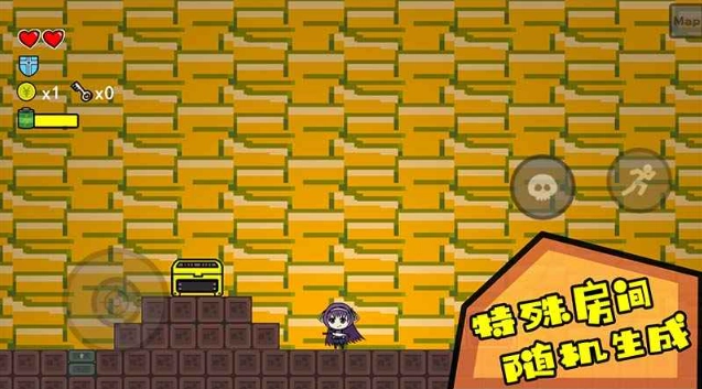1、地图完全随机生成,每次打开一扇门,都如同开启盲盒一般。说不定前一刻才踏入堆满金币的宝库,下一刻就遭遇能瞬移、发射追踪弹的阴间怪物。而特殊房间里,惊喜与惊吓更是同时存在。