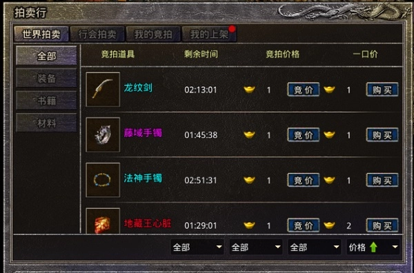 2、传奇币拍卖:无论是上架的拍品还是参与竞拍的拍品,均以传奇币作为交易媒介。鉴于传奇币的获取相对轻松,使得参与传奇币拍卖的人数更为众多。然而,在此类拍卖中上架的拍品,其稀有程度普遍不高。
