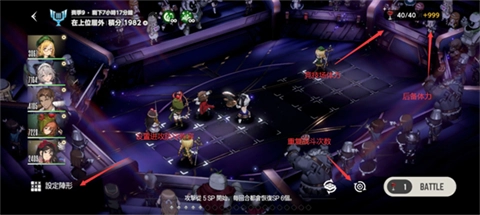 2、在竞技场中,战斗需消耗红酒杯,红酒杯等同于一般游戏里的体力。每天上午8点,系统会为玩家重置40点体力。此外,后备体力可通过参与日常活动获赠,这部分体力不会受重置影响。设定阵形指的是调整你的进攻与防守阵容,而齿轮的作用是设定重复战斗的次数。