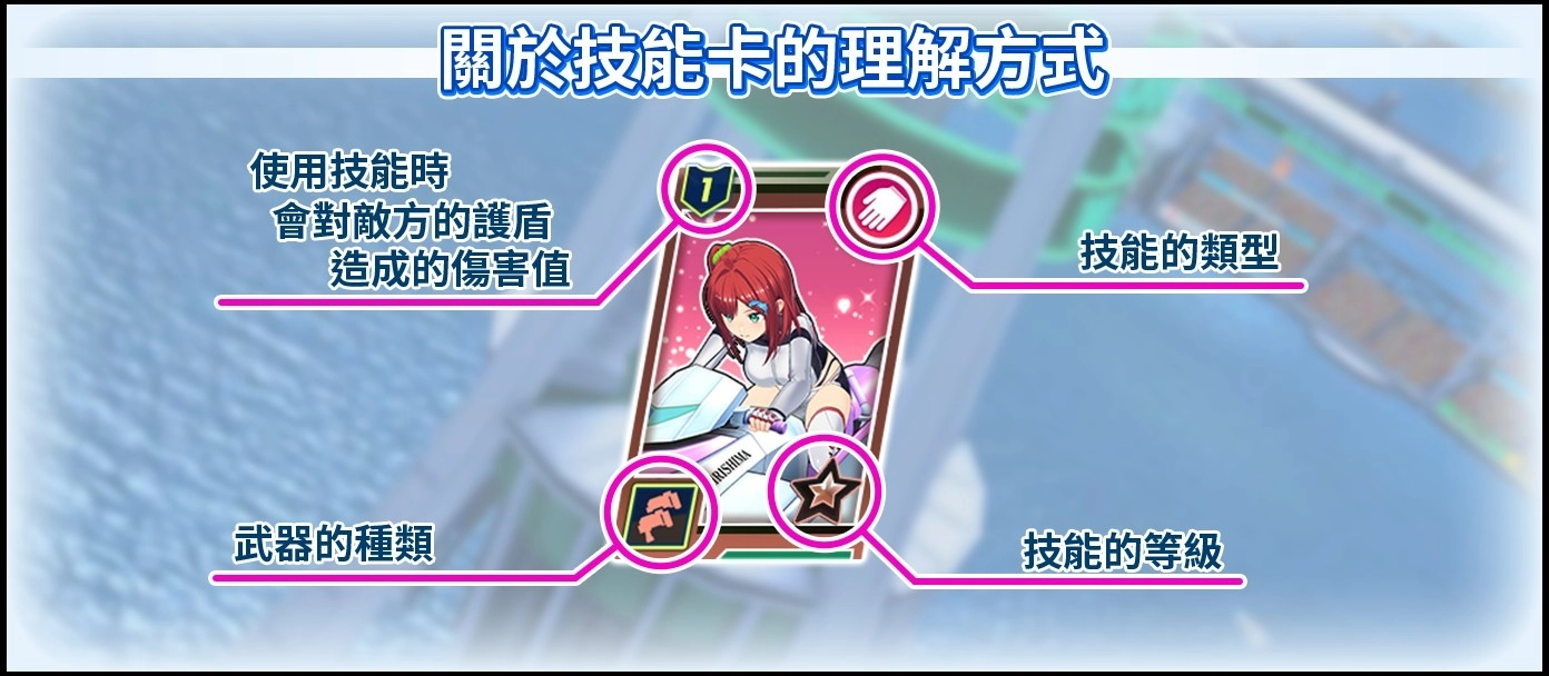 技能卡上会呈现对敌人护盾造成的伤害、武器类型、技能类型以及技能等级。