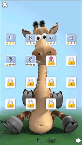 2、当吉娜开心度达到70% ,她可以玩3个苹果。3、若吉娜的开心程度达到100%,你便能获得一只长颈鹿宝宝!