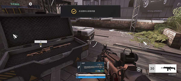 2、随后拉动操纵杆来控制角色移动,同时点击图标拾取武器——步枪。