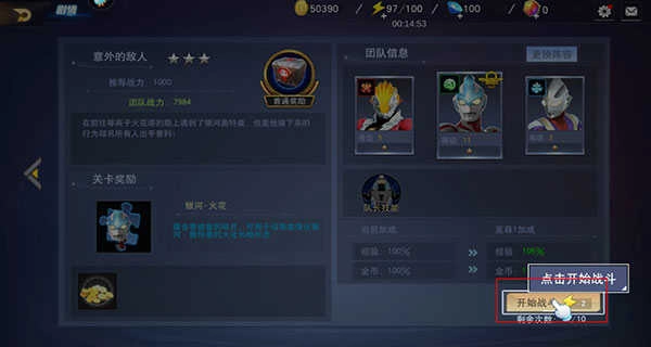 3、选择完毕后,便可进入游戏,点击“出战”。