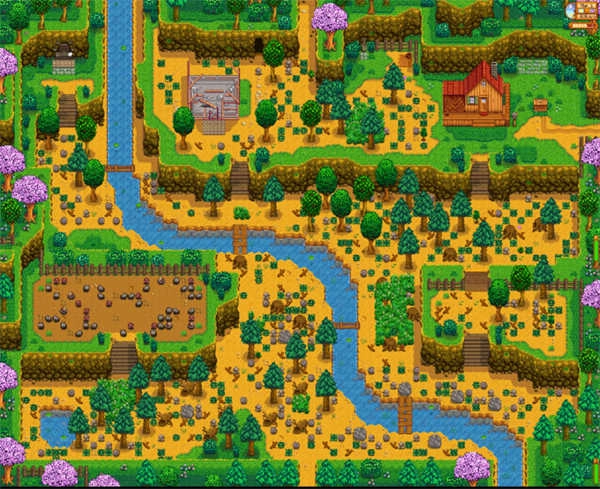 在目前的六张地图中,这张农场地图的可耕地面积最大(约5000格),尽管其形状并不规则。