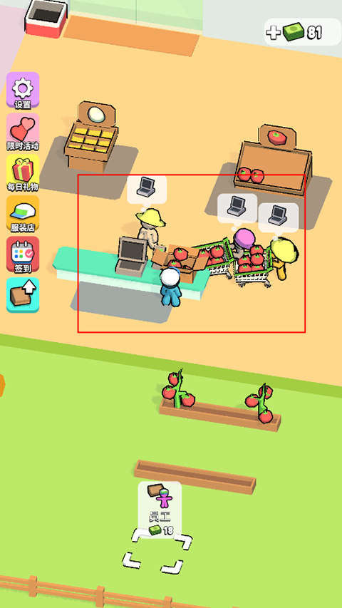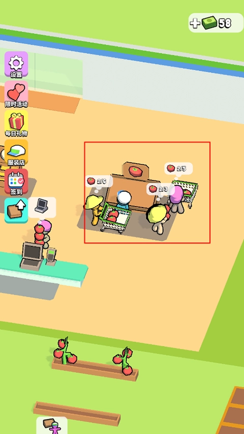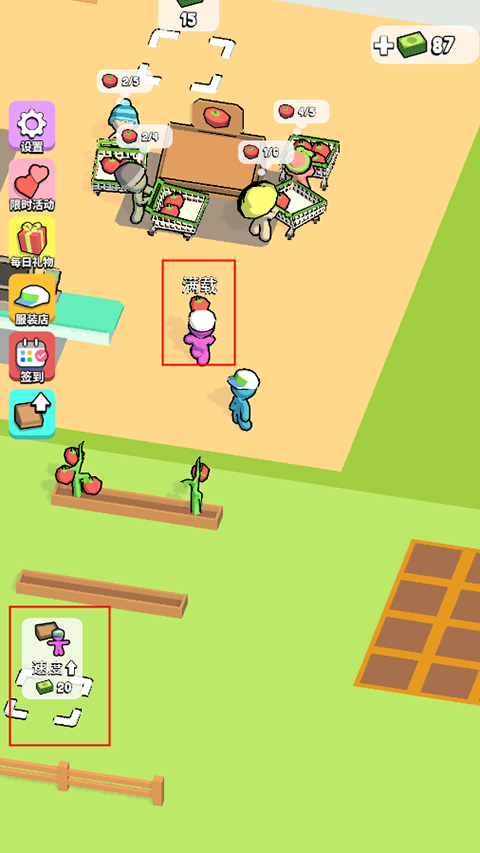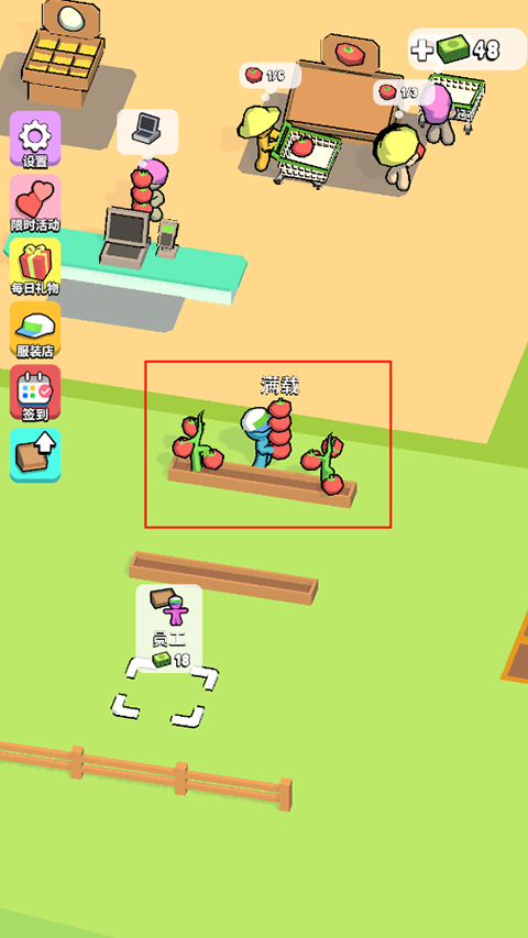 2、当购物车满载时,就需要将货物搬运至货架,以便购物者购买玩家种植的番茄。购物者会表明所需购买的数量,有时可能需要来回搬运好几趟。