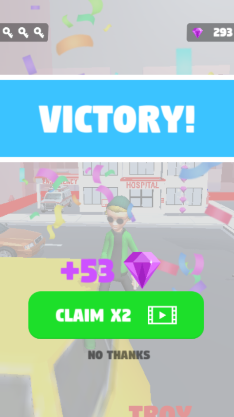 2、在游戏中,玩家要躲避医生的追捕,地图上会随机生成钻石奖励以及各类特殊加成道具。