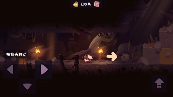 1、按住箭头可以控制冒险狗移动。