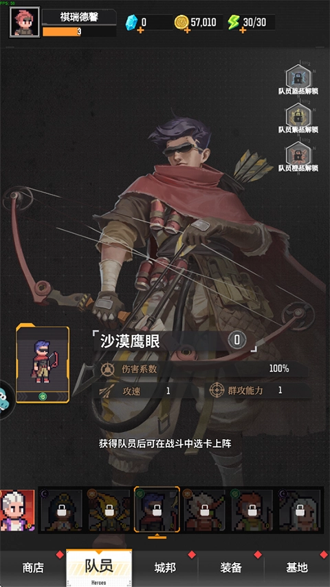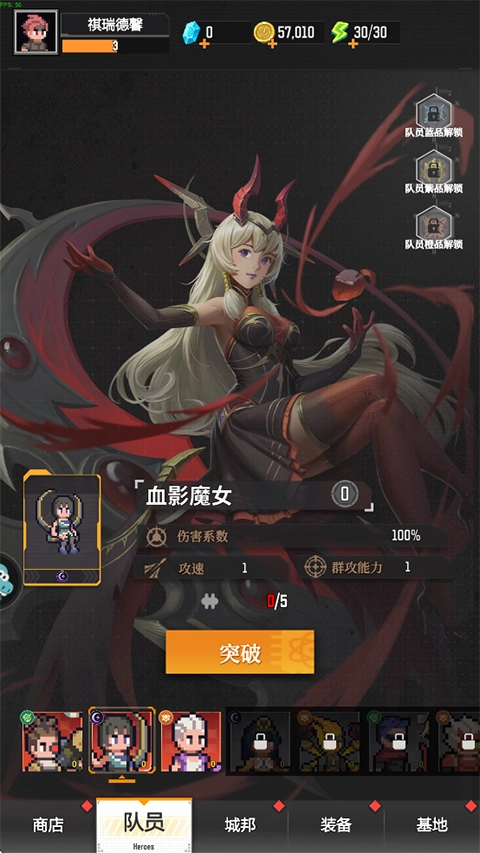 1、进入游戏,点击选择一个技能或队员,辅助你击败来势汹汹的怪物;