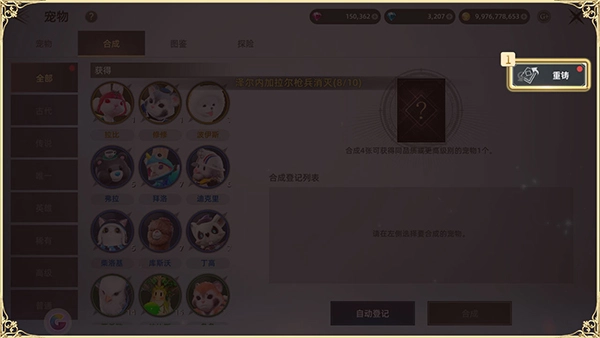 要是在进行宠物合成的时候,出现了英雄级品质或者更高级别的宠物,就能够选择对宠物进行重铸。