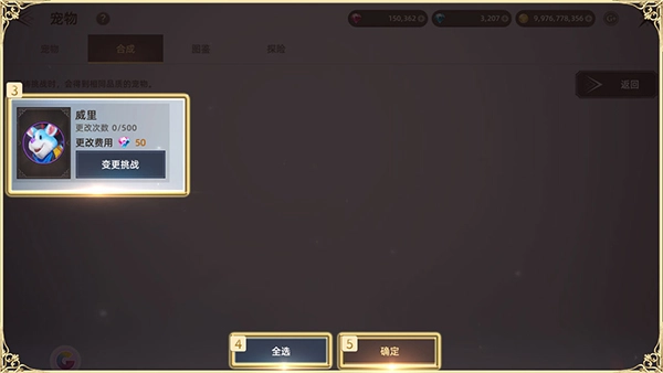 3、当您点击合成按钮,所选中的宠物即会进行合成操作,且用于合成消耗的宠物不可恢复。