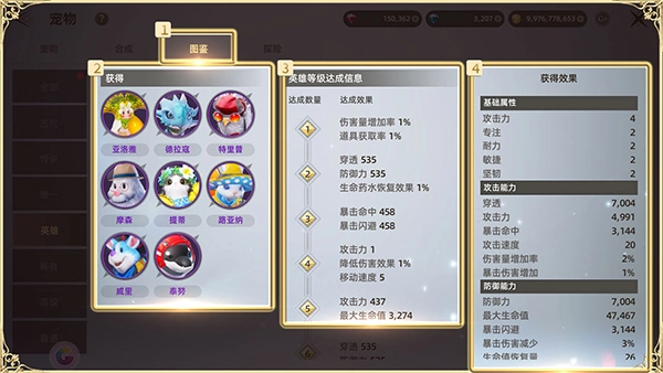 2. 拥有宠物能够解锁图鉴增益,其效果会依据该品质宠物的数量而定。