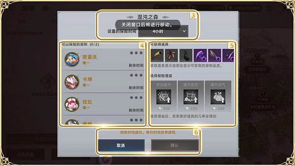 派遣宠物去完成探索任务,能够获取各类制作材料。