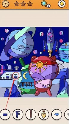 小铲子位于游戏界面右上方火箭的尾部,因同色系的缘故,很容易造成视觉混淆。