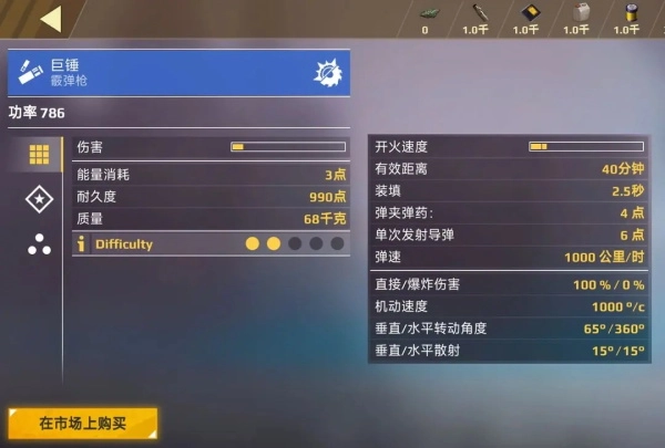 对于新手工程师来说,要是作战风格是“战车格斗”,也就是利用快速的轻型车辆开展近距离战斗,霰弹枪会是个相当不错的选择。就像下图中的“巨锤”霰弹枪,它的弹夹能装4发弹药,每次射击会射出6枚弹丸,而且稀有度只是蓝色,在游戏前期属于性价比很高的物资。