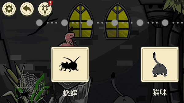 最后轻点小猫,使小虫跳上去,借此打开门,就能顺利进入下一关。