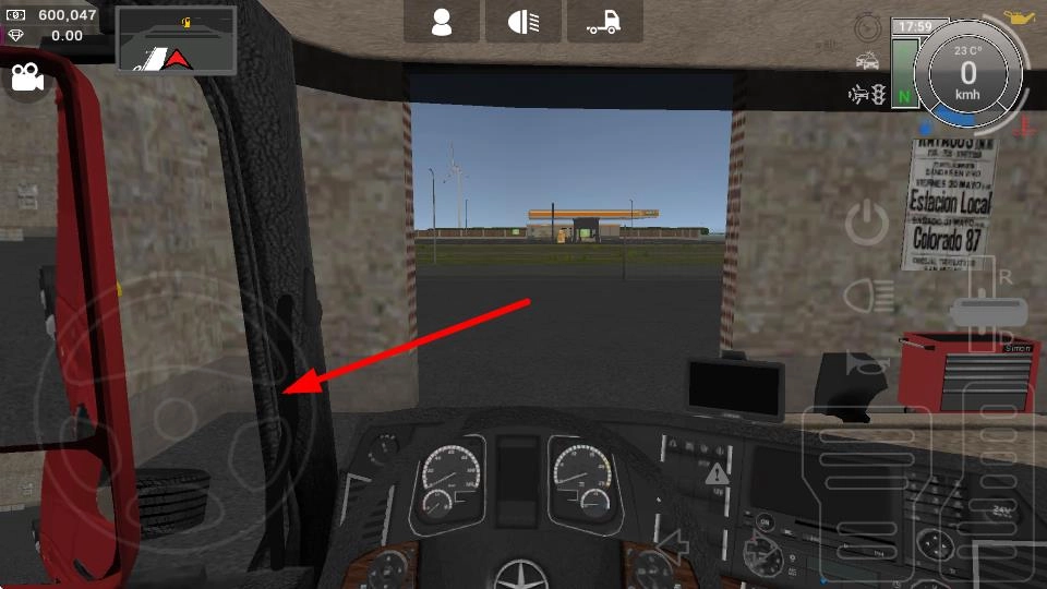 1、驾驶卡车时,可通过左侧操作区域对车辆转向等基础操作进行控制,这是在场景中实现移动与调整的方式。
