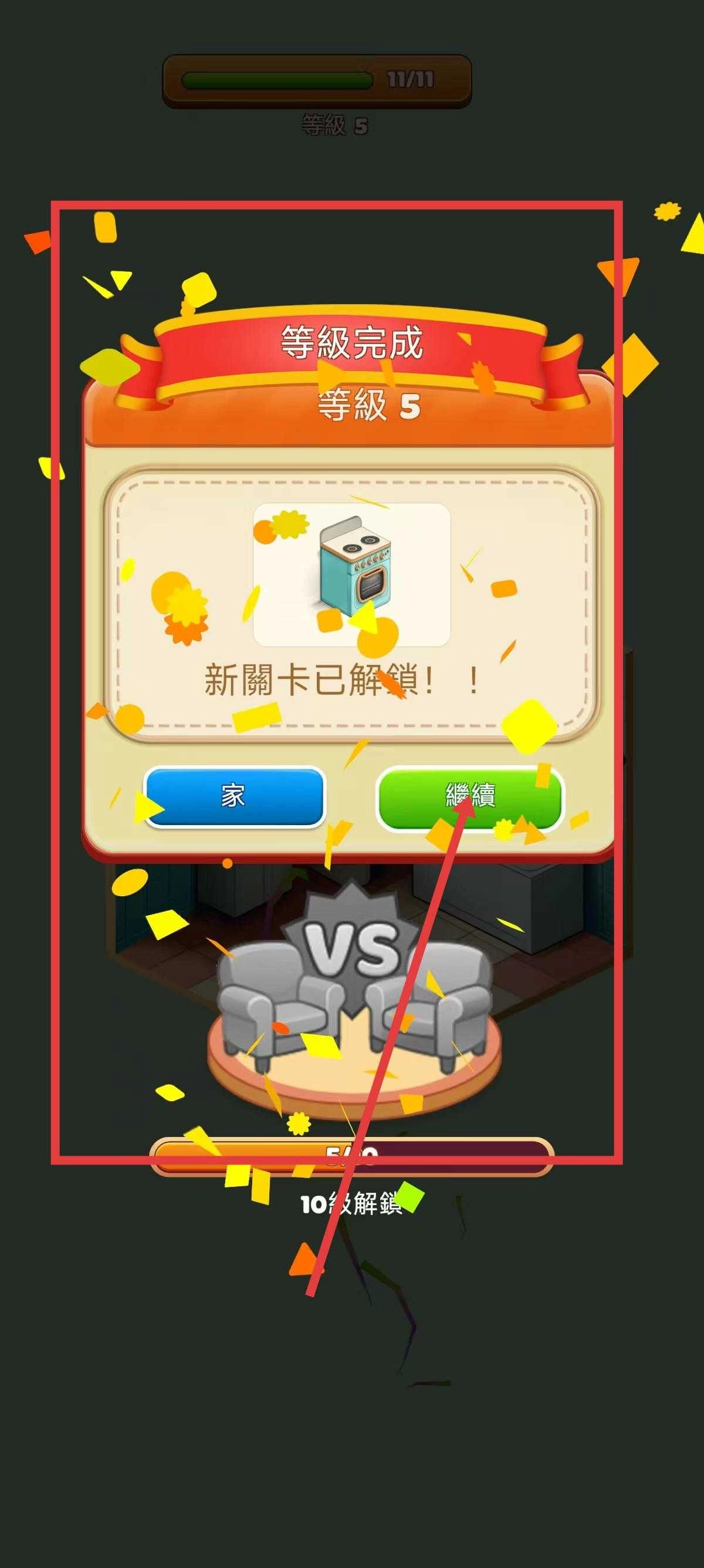 4、场景布置完毕且满足关卡要求后,会提示等级完成,同时解锁新关卡。此时点击“继续”,即可进入新关卡继续游戏。