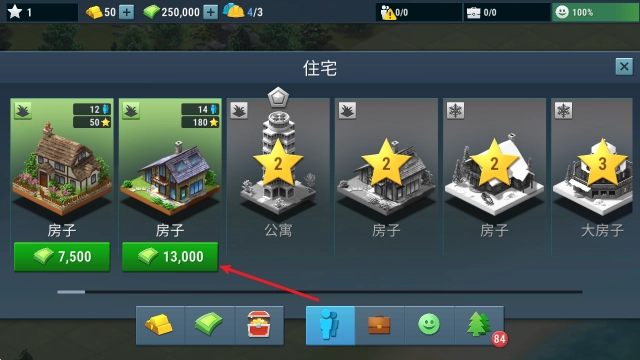1. 游戏开始后,点击左下角的购物篮,在该界面找到建筑并开始建设。
