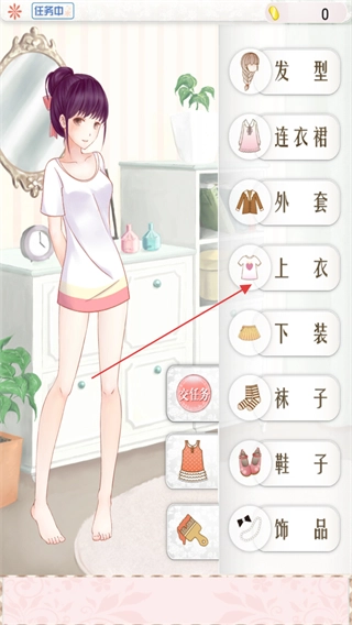 4、完成上衣、下装、鞋子等整体搭配,随后点击“交任务”提交换装成果。