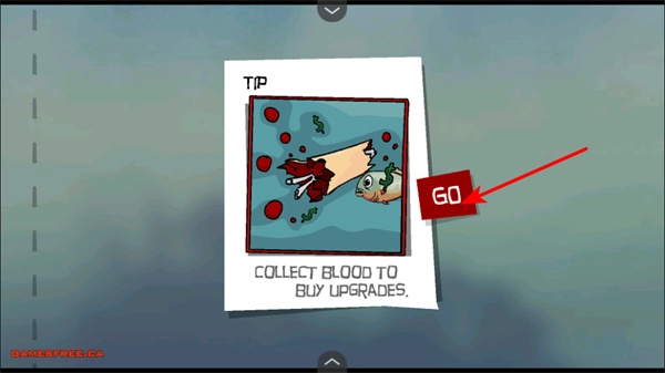 1. 进入游玩界面后,点击“GO”按钮,即可进入游戏,一同开启一场以收集血液进行升级为核心的冒险任务。